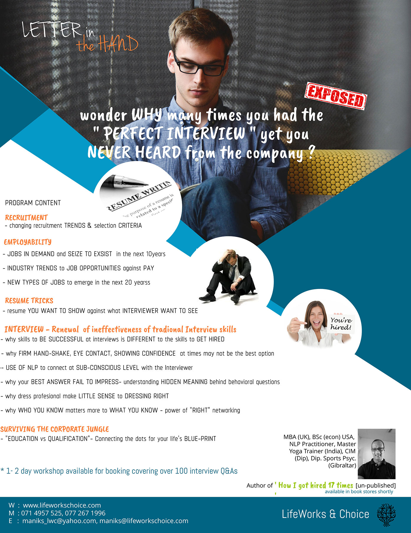 We are unique as we prepare interviewees based on the realistic observation that those techniques required to be successful at job interviews is distinctly different to the tools required to get the 'letter in the hand' or eventually get hired. Having aced a successful job interview based on conventional interview check-list, often you find candidates left confused and frustrated wondering despite performing extremely well at the interview, they never here from the prospective companies/recruitment agent. This gap has never been addressed and never will in the future due to its sensitivity and will continue to create disadvantages to candidates who are left emotionally scared, depleting self-confidence and low self-esteem. We challenge ineffective traditional common-sense led interview techniques by offering emerging tools of connectivity to get hired creating an absolute advantage over other candidates.